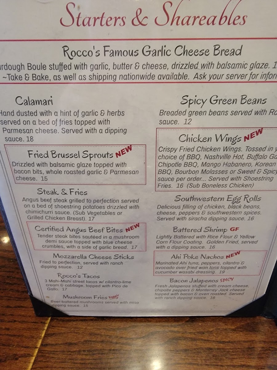 The atmosphere at Rocco's is relaxed yet upscale, making it the perfect spot for casual dining or a special night out. As you step inside, you’re greeted by friendly staff and a fun decor that reflects the spirit of the local community. The vibrant, homey feel is complemented by creative touches throughout the restaurant, making each visit feel uniquely special.